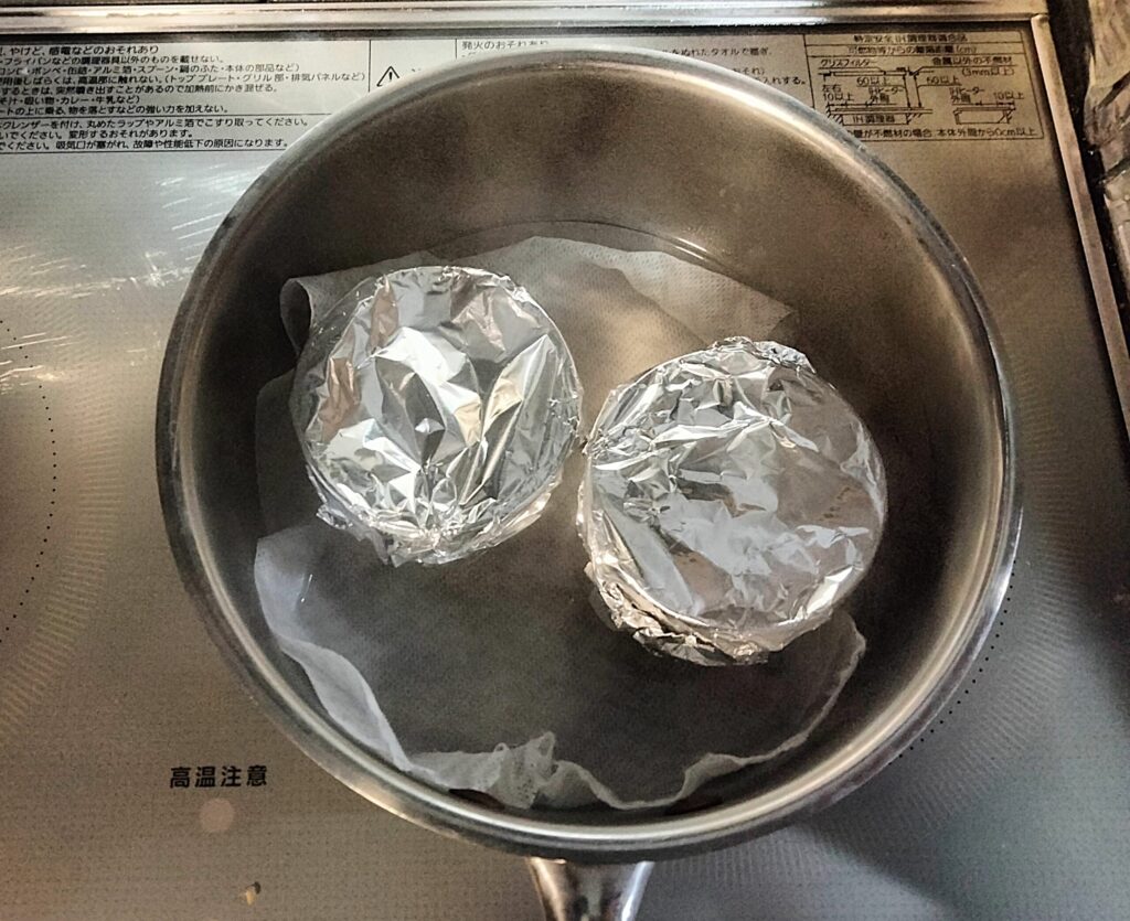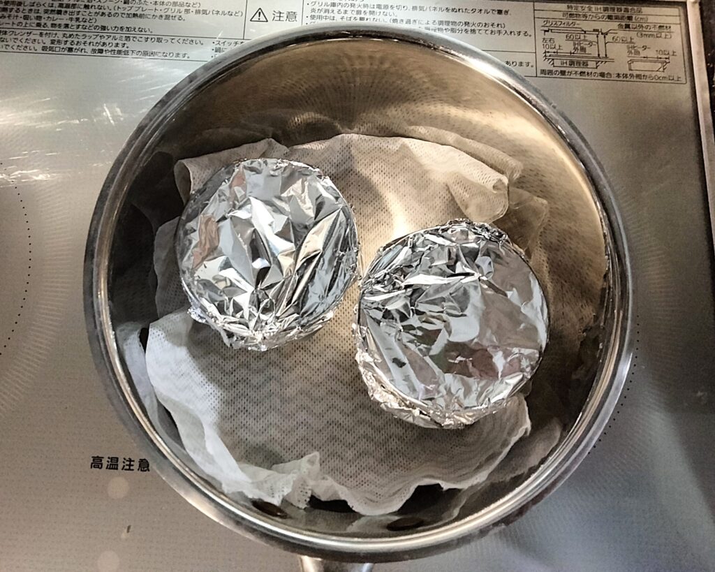 3、キッチンペーパーとアルミホイルで蓋をする