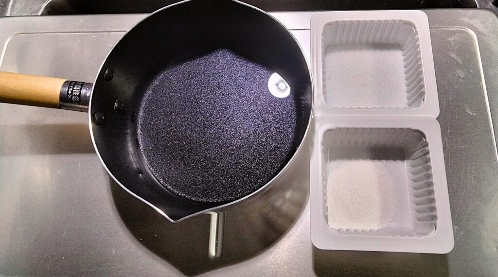 水に溶かす前にあらかじめ、砂糖とアガーを混ぜ合わせておきます。