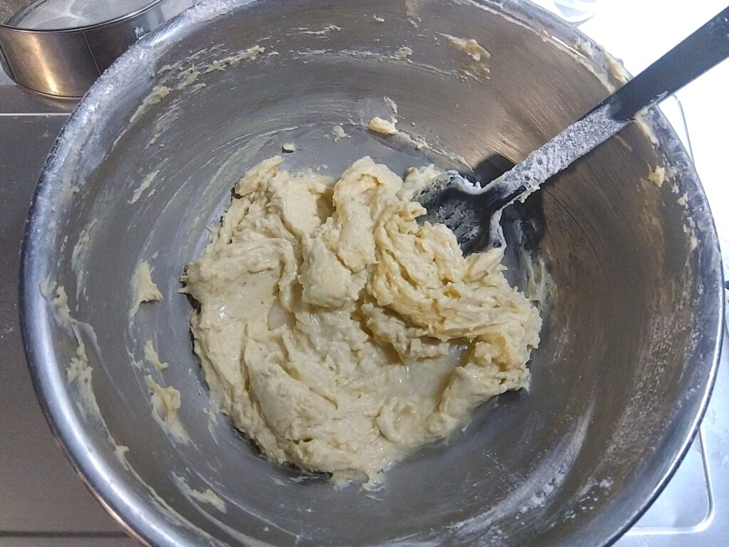 ※薄力粉とベーキングパウダーは一緒にして、ふるってボールに加えます。